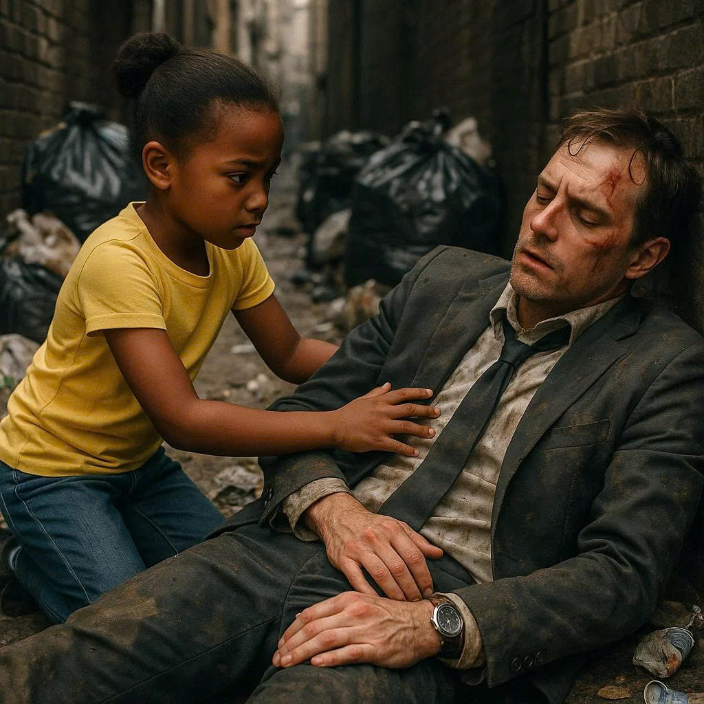 He wore a suit, or what remained of one—expensive fabric ruined by dirt and stains, the kind of clothing Valerie only saw in store windows or on billboards. His shirt was ripped at the collar, his tie hanging crooked and filthy. There was a visible wound on his head, dried blood dark against his pale skin. He looked like a fallen angel tossed out of the heaven of the wealthy. Or maybe a demon, she thought uneasily, cast from some rich world she would never know.