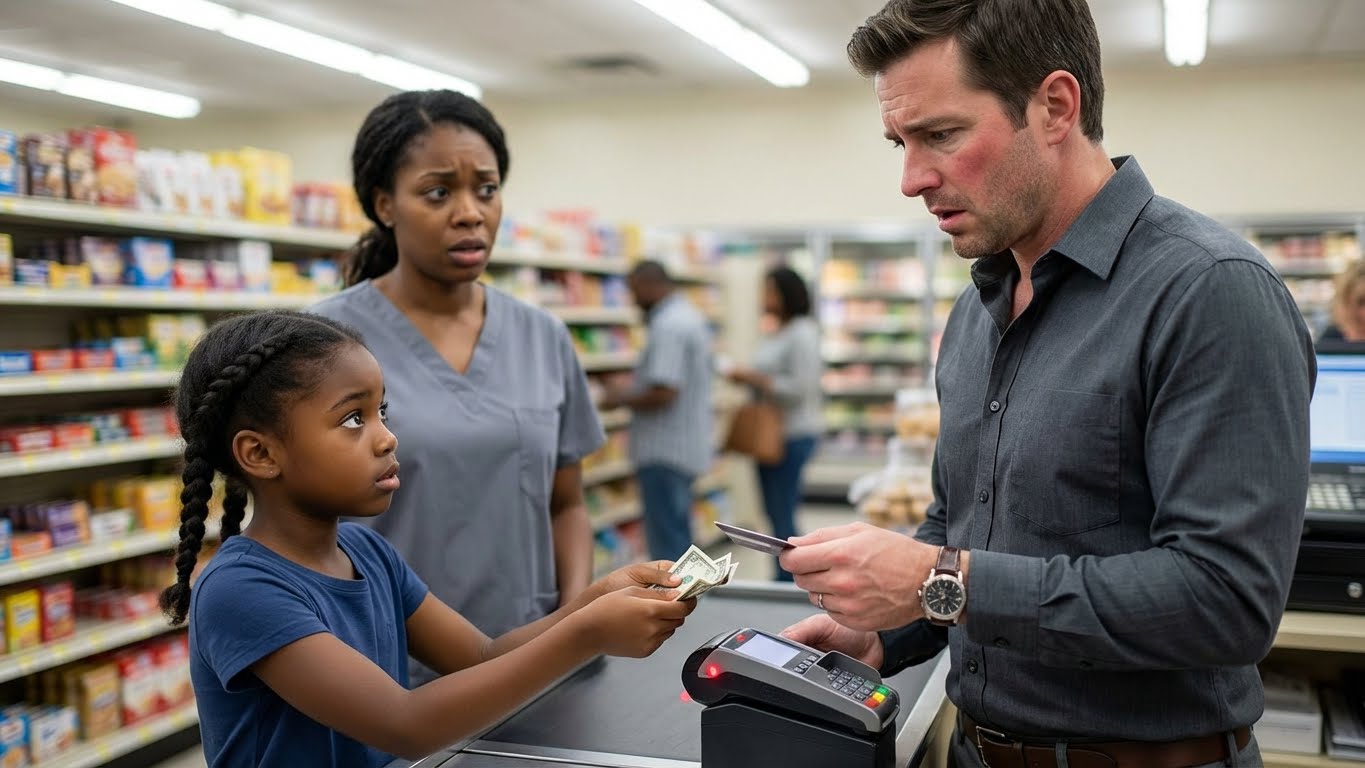 Silence settled over the checkout lane for a beat. Even the card reader seemed to hold its electronic breath.