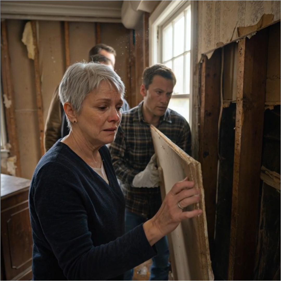 The room looked strange—violated. The bones of the house were exposed, stripped of carpet and wallpaper. Two of Morgan’s crew stood near the far wall, their faces carefully neutral.