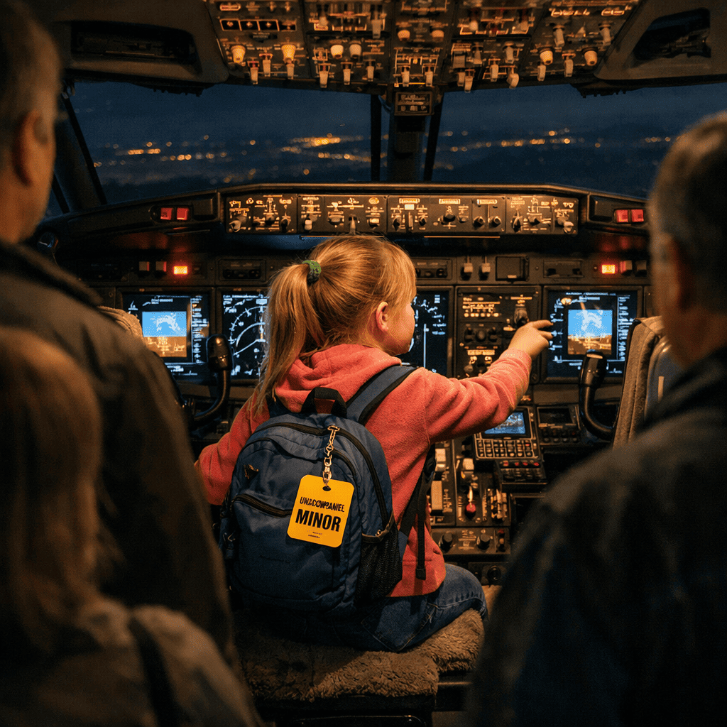 “Yeah, Flora. She’s 11, visiting grandparents in Boston, flying home alone.”