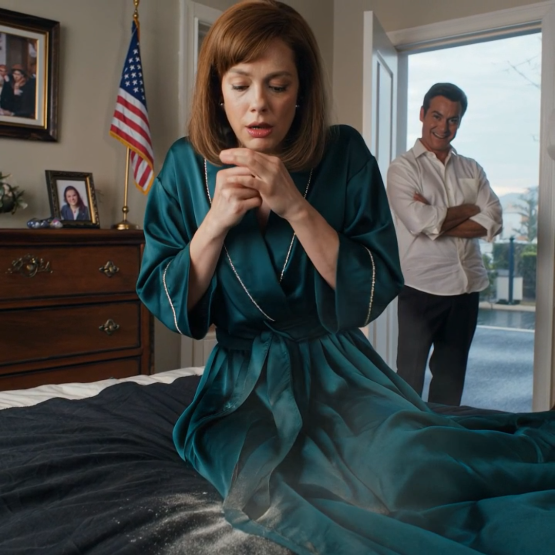 “Mark, maybe I’ll just wear the blue one instead. You remember the one we chose together last year? It looks really good on me, too.”